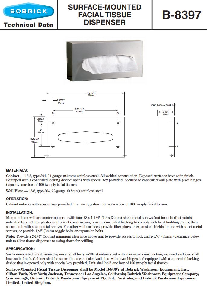 RVS tissue dispenser opbouw. Uitvoering: satin finish