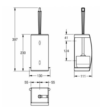 RVS houder met witte kunststof toiletborstel. Afm. 230x130x111mm (totale hoogte 397mm)