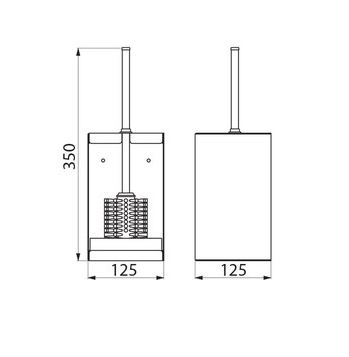 RVS toiletborstelhouder 350x125x125mm met borstel. Uitvoering:RVS 304 gepolijst. Muurmontage of staand model. Uitneembare houder in plexiglas. Afmetingen: 125 x 125 x 350 mm. Toiletborstelhouder.