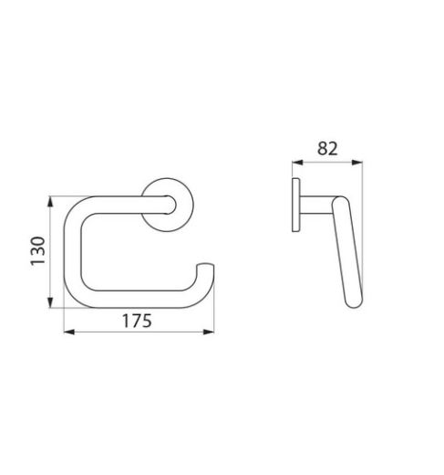 Toiletpapierhouder in U, voor rol. Buis Ø 20, dikte 1 mm. Afwerking in RVS glanzend gepolijst. Onzichtbare bevestigingen.