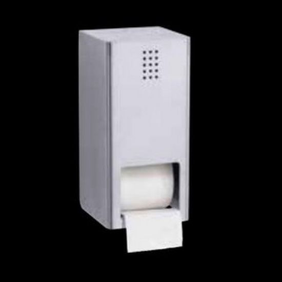 Toiletrolhouder voor twee rollen. Max. 140mm breed en met een diamter van 130 mm.De tweede rol valt automatisch in de goede positie als de eerste verbruikt is. Voor muurbevestiging.
