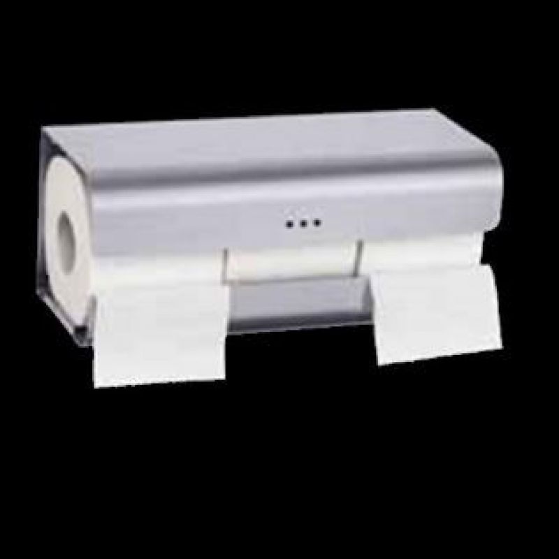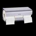 Dubbele toiletrolhouder met reserverolhouder voor muurbevestiging. Voor rollen van max. 105 mm breed.