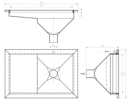 RVS 304 Slophopper afm. 900x600mm, afvoer diam 98mm. Optie: RVS 316