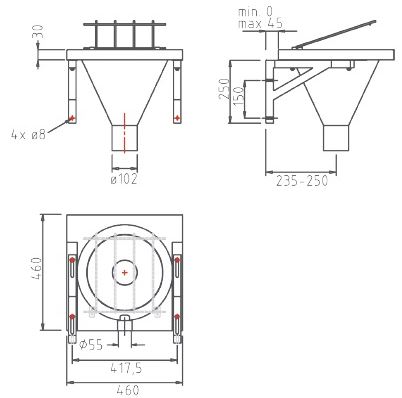 IN318 RVS 304 Slophopper voor wandmontage uitw. 460x460mm.
