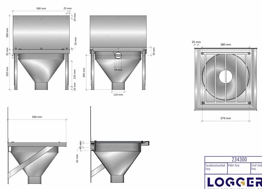 RVS 304 Slophopper wandmodel 500x500x505mm incl. spatplaat 300mm.