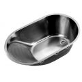 RVS Babybad voor vlakke inleg of onderbouw. Incl. 1,5" afvoerplug, stop, ketting en klemmen. Inw. afm. 700x400x250mm. Optie: Wandoverloop