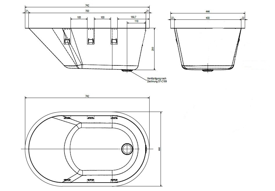 BA7040ZO RVS babybad inbouw 700x400x250mm