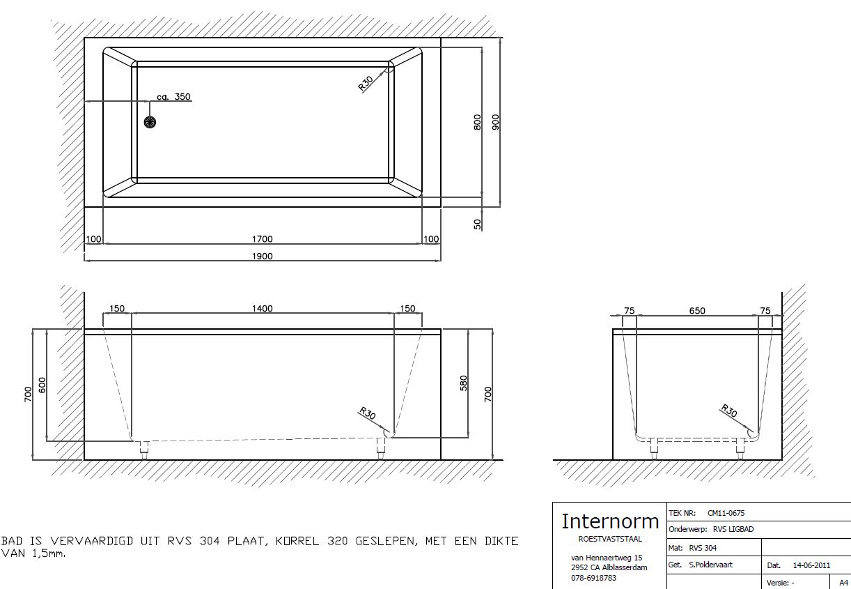 RVS ligbad. Ook in iedere gewenste maat leverbaar. Met of zonder panelen