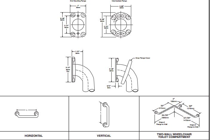 RVS Badgreep diameter 38mm, lengte 305mm.