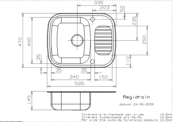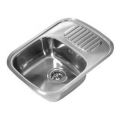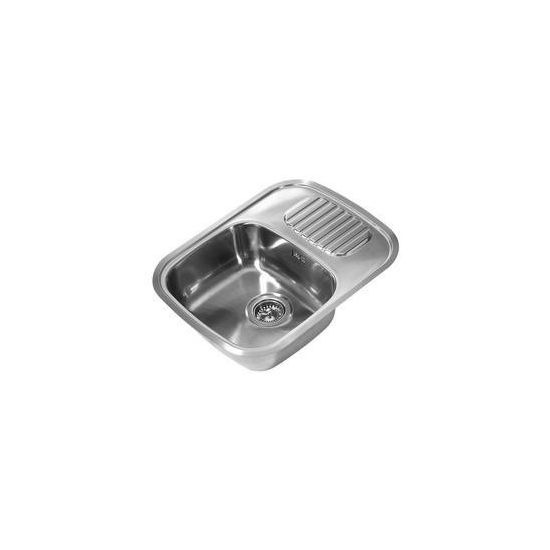 RVS Aanrecht met halfronde bak en afdruip met 3,5" korfplug, afm. uitw. 595x470mm. Past in kastmaat 400mm.