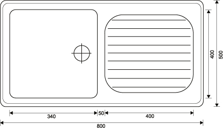 RVS Opleg aanrecht met diepe spoelbak. Afm. 800x500mm, incl. spoelbak 340x400x200mm. Incl. korfplug.