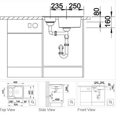 BLANCOTIPO 6 Basic RVS 304 spoelbak opb. inw.525x420x170mm