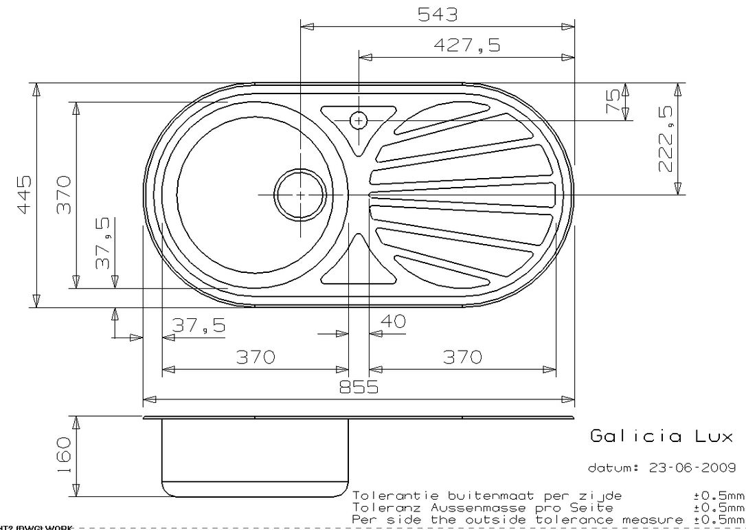 Galicia RVS 304 aanrechtblad opbouw spoelbak met afdruip met korfplug met standaard 2 gaten voor waste en kraangat