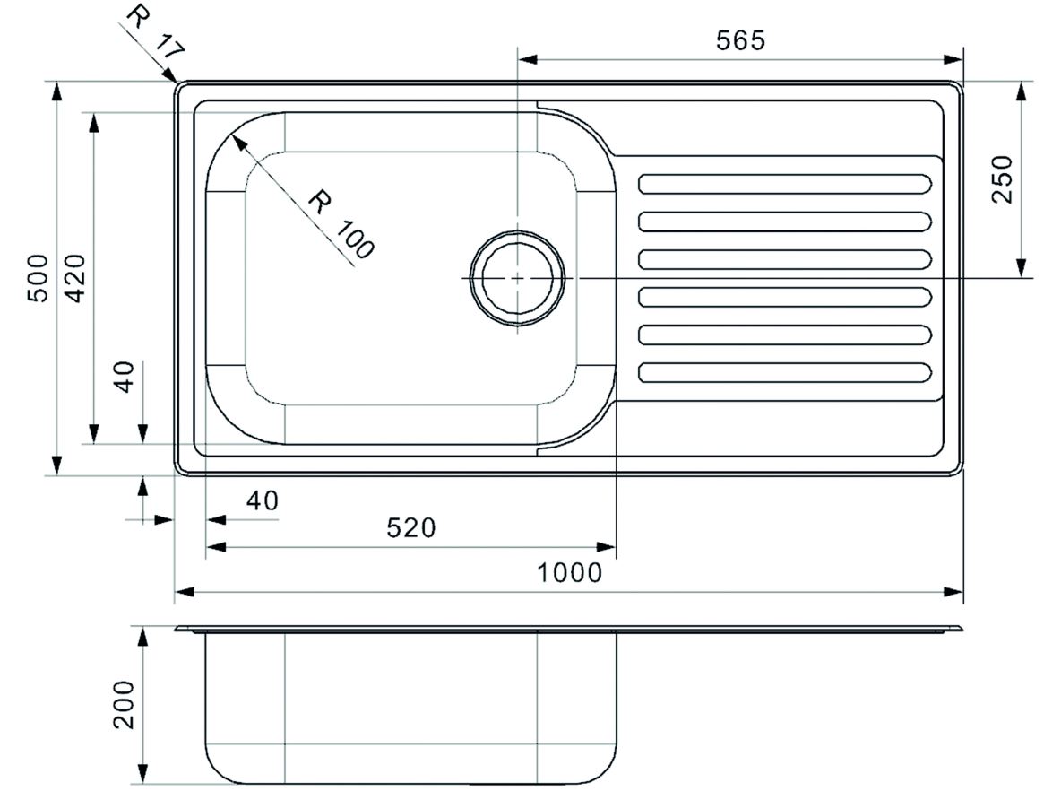 Minister10 RVS spoelblad opbouw uitw. 1000x500mm incl. korfplug