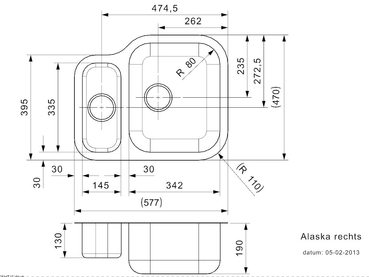 Alleen geschikt voor onderbouw Leverbaar met grote unit links of rechts uitw. 577x470 mm