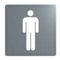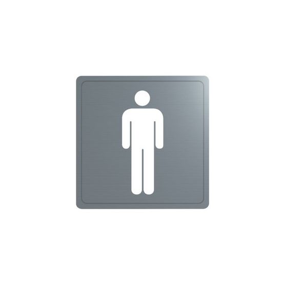 RVS 304 mat gepolijst. Dikte RVS: 1,2 mm. Pictogram "Man". Afmetingen: 125 x 125 mm.