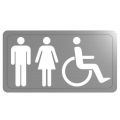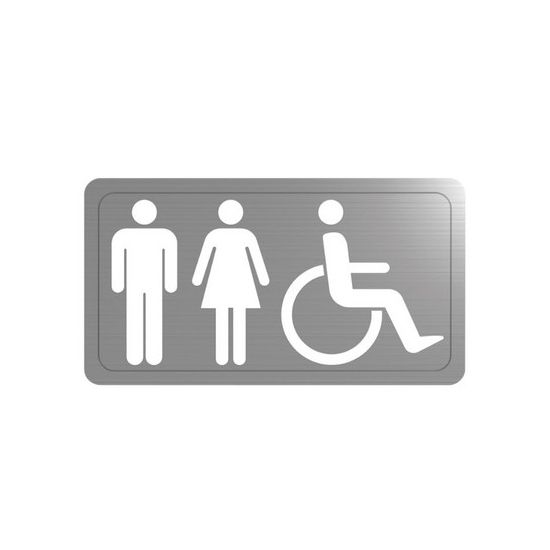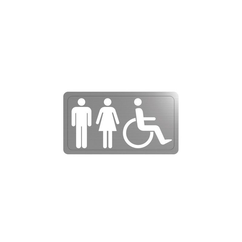 RVS 304 mat gepolijst. Dikte RVS: 1,2 mm. Pictogram "Mindervalide Gemengd". Afmetingen: 230 x 125 mm.