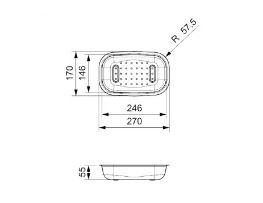 RVS inzetbakje tbv AR.60. Afm. inw 246x146x55mm. Uitw. 270x170mm