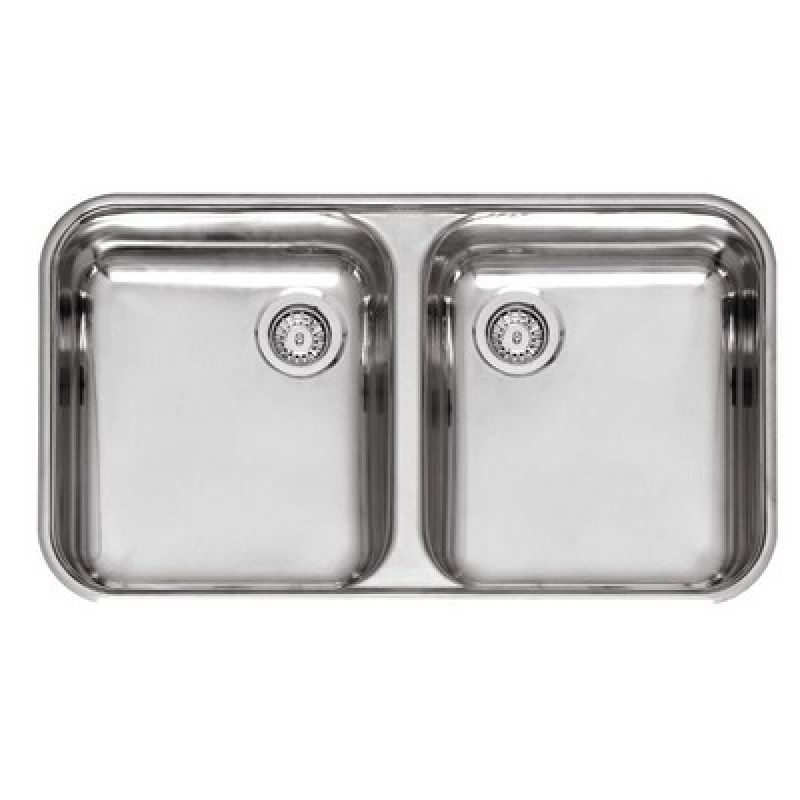 DI3540VKPZO RVS dubbele spoelbak vlak met korfpluggen ZONDER OVERLOOP