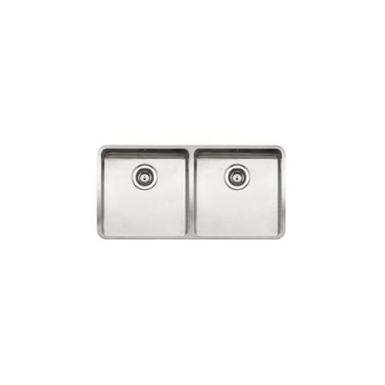 Grote RVS bak links vlak. Afm. 400x400x180/400x400x180, radius=25. Incl. korfplug. Vlak bouw ook in onderbouw leverbaar! uitw. 870x440mm