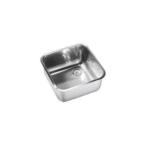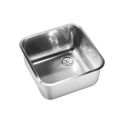 Kleine diepgetrokken RVS spoelbak voor onderbouw. Afm. inw. 330x330x180mm. Excl. klemmen en 1,5" afvoerplug