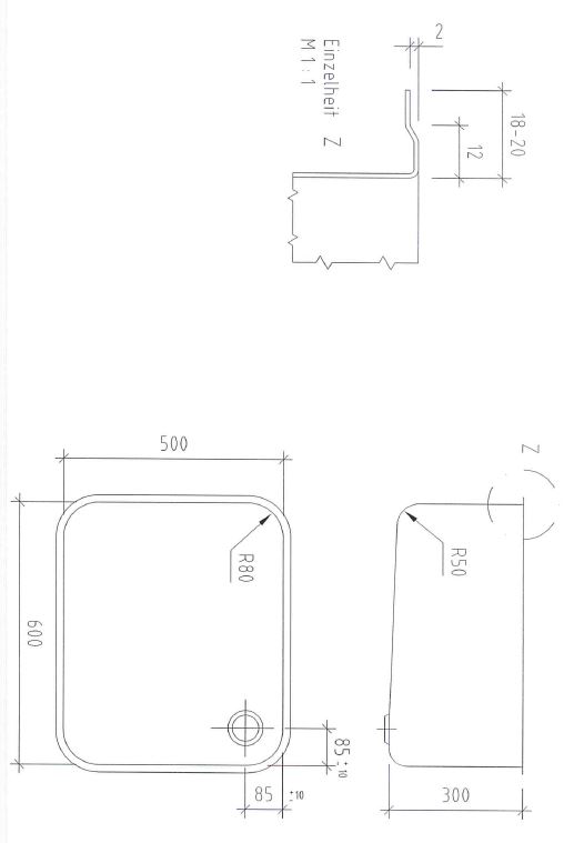 316IBL605030R RVS 316 inlas spoelbak inw. 600x500x300mm afv. rechts. Incl. plug
