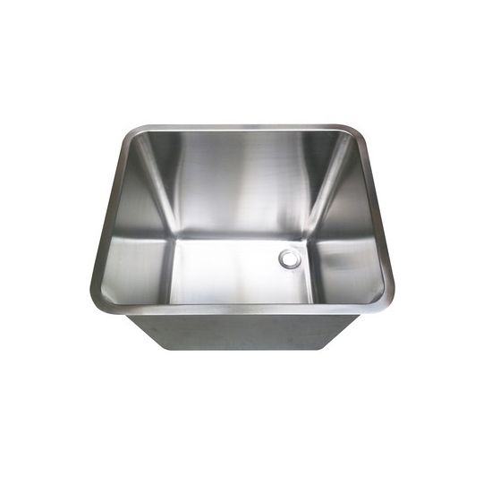 Excl. klemmen. Grote diepgetrokken RVS spoelbak voor inlas of onderbouw. Afm. inw. 700x500x300mm. Met 1,5" afvoerplug. Links model.