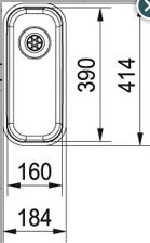 LAX110.16D RVS spoelbak onderbouw afm. 160x390x120mm met korfplug