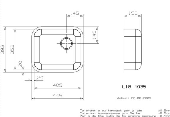 EI3540KP RVS spoelbak opbouw inw. 405x353x150mm incl. korfplug/wo