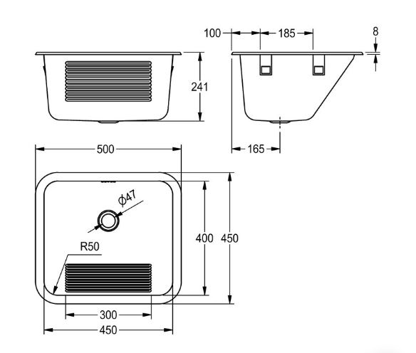 362070 RVS plunjebak opleg 500x400x230mm oplegmodel
