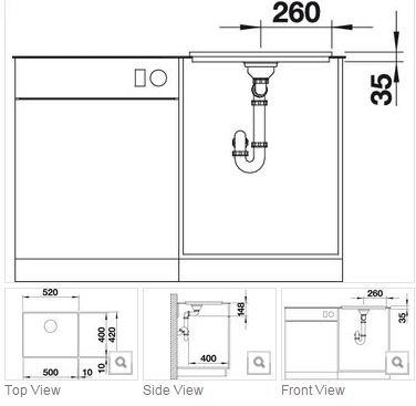 BLANCOATTIKA 60-T RVS 304 spoelbak opbouw 500x400x35mm met korfplug inbouw verlek RVS Spoelbak met radius voor inbouw/opbouw uitw. 520x420x35mm. Incl. korfplug
