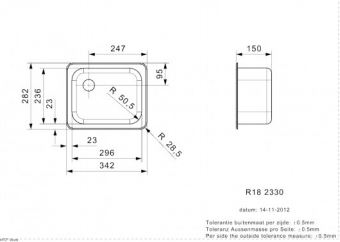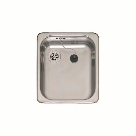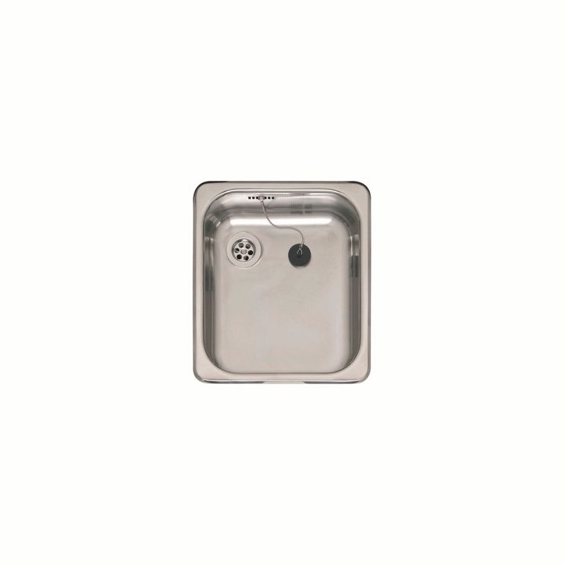 Vierkante spoelbak, inw. afm.236x296x150 mm. Voor opleg met klemmen en afvoerplug 1,5" en wandoverloop.