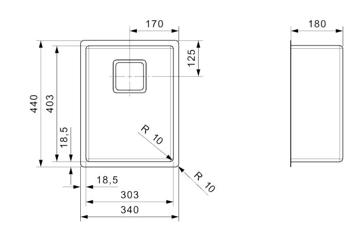 Texas 30x40 RVS spoelbak R10 inw. 300x400x180mm. Incl. vierkante kp/wo