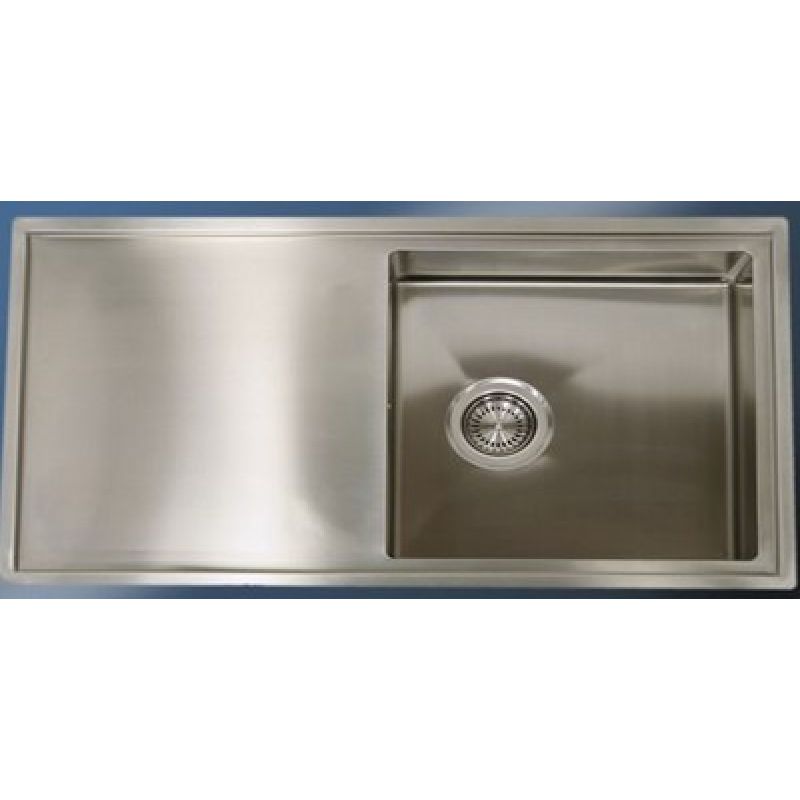 Vlakke inleg spoelunit met afzet, spoelbak met kleine radius. Incl. korfplug met wandoverloop. Omkeerbaar K320 geslepen RVS 304 (Omkeerbaar)