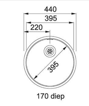 RVS 304 spoelbak inw 395 incl. korfplug. Kastmaat 450mm. voor vlakke inleg of onderbouw