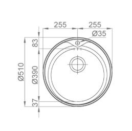 RK390KP RVS ronde spoelbak voor opleg met kraangat inw. 390mm