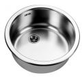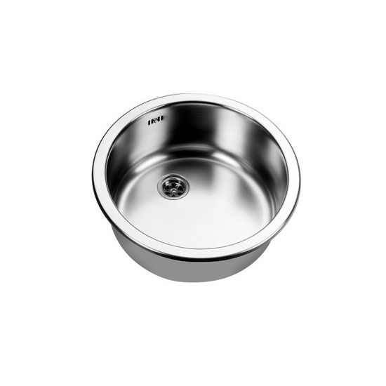 Ronde RVS spoelbak voor opleg. Compleet met vastzetklemmen, 1,5" afvoerplug en wandoverloop. Inwendig 380mm. uitw. 425mm, diepte 160mm.