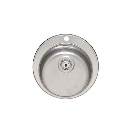 RVS 304 ronde opbouw spoelbak met kraangat. Uitw. 520mm, inw. 390mm.