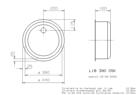 RI390VZO RVS ronde spoelbak vlak inw. 390mm, diepte 160mm