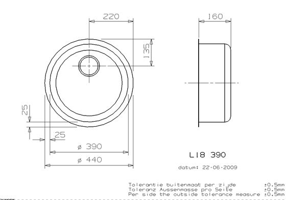 RI390VKP RVS ronde spoelbak vlak inw.390x160mm met korfplug/w.o.