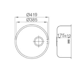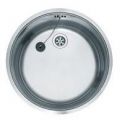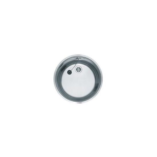 Ronde RVS spoelbak voor vlakke inleg. Compleet met vastzetklemmen, 1,5" afvoerplug en wandoverloop. Inw. 385x175mm.