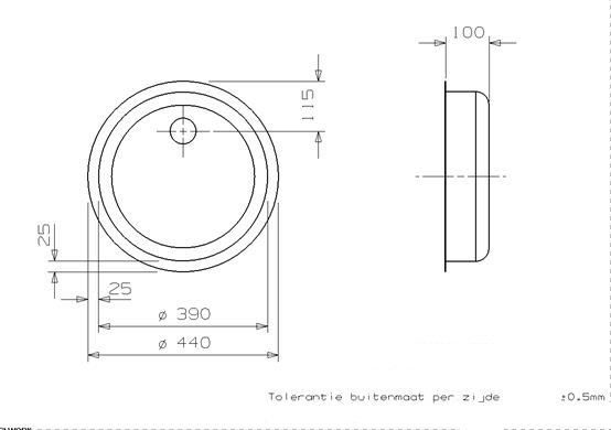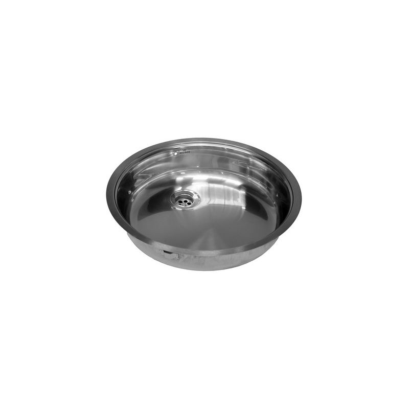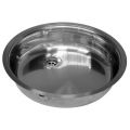 Ronde RVS spoelbak voor vlakke inleg. Compleet met vastzetklemmen, 1,5" afvoerplug Inwendig 390mm, uitw. 440mm, diepte 100mm.