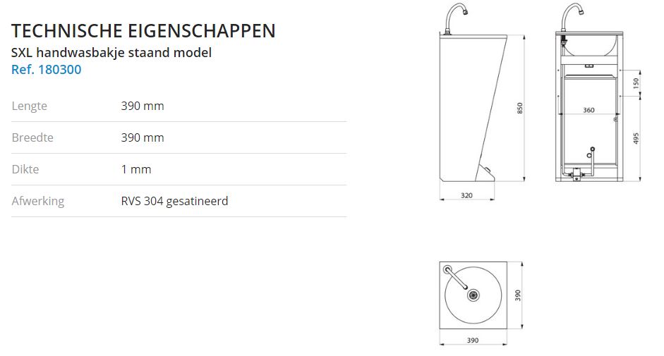 180300 RVS SXL handwasbak staand model satin finish compleet met voetbediening