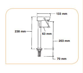 Verchroomde glasvuller (hendel en binnenwerk in RVS) Kraanhoogte 238mm.
