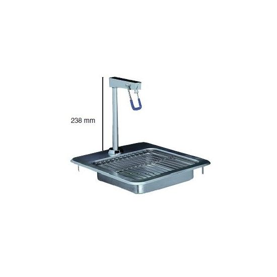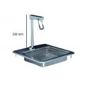 Opbouw unit bestaande uit RVS 304 wateropvangbak met RVS rooster. Verchroomde glasvuller (hendel en binnenwerk in RVS). Bakje inwendig 222x222x76mm Incl. afvoernippel. Kraanhoogte 238mm.