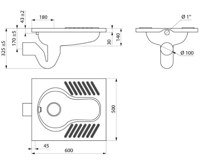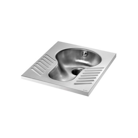 Hurktoilet in te bouwen in de vloer, 500 x 220 x 600 mm. Bacteriostatisch RVS 304. Mat gepolijste afwerking. Dikte RVS: 1,2 mm. Geperste kom, zonder lasnaden, voor een eenvoudig onderhoud en een betere hygiëne. De vorm van de kom is universeel. Antislip bodem waar de voeten moeten staan. Verticale afvoer: Ø 100 mm. Spoelsysteem met 1 sproeikop in RVS 304. Gewicht: 5 kg. 10 jaar garantie. Turkish Squads