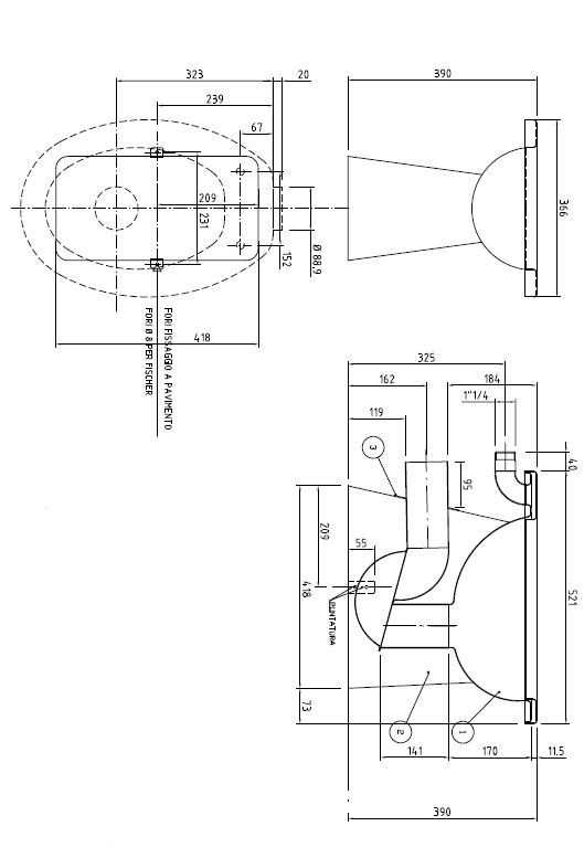 Voordelig staand RVS toilet met P-sifon. Met achteruitlaat 90mm diam. Watertoevoer 1,25" bu. dr. Incl. montagesets voor bevestiging aan de vloer. Opties: zitting met deksel.