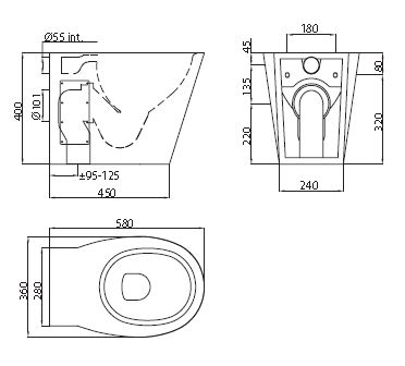 Staand toilet, 360 x 400 x 580 mm. Elegant en strak design. Bacteriostatisch RVS 304. Mat gepolijste afwerking. Dikte RVS: 1,5 mm. Geperste kom, zonder lasnaden, voor een eenvoudig onderhoud en een betere hygiëne. De binnenkant van de kom is gepolijst en de randen zijn afgerond voor een gemakkelijke reiniging. Met spoelrand. Water inlaat horizontaal Ø 55 mm. Horizontale of verticale afvoer Ø 100 mm. Geleverd met PVC pijp. Waterbesparing: efficiënte werking met 4 L water of meer. Voorzien van boorgaten voor het plaatsen van een toiletzitting. RVS afdekdopjes worden meegeleverd voor gebruik zonder bril. Snel en eenvoudig te plaatsen: 2 inspectieluiken met anti-diefstal schroeven TORX.