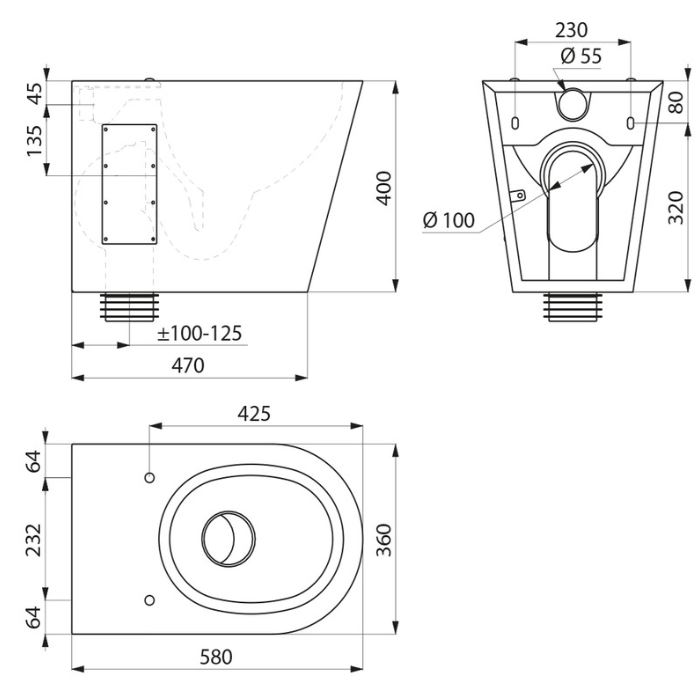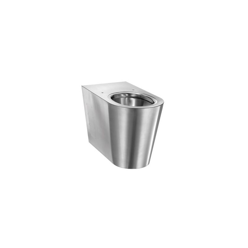 Staand RVS toilet met schuine voorzijde. Exclusief zitting. Afm. uitw. 580x400(h)x360(b)mm. Excl. ankers. Excl. sifon. Incl. inspectieluiken. Elegant en strak design. Bacteriostatisch RVS 304. Gesatineerde afwerking. Dikte RVS: 1,5 mm. Geperste kom, zonder lasnaden, voor een eenvoudig onderhoud en een betere hygiëne. De binnenkant van de kom is gepolijst en de randen zijn afgerond voor een gemakkelijke reiniging. Met spoelrand. Water inlaat horizontaal Ø 55 mm. Horizontale of verticale afvoer Ø 100 mm. Geleverd met PVC pijp. Waterbesparing: efficiënte werking met 4 L water of meer. Voorzien van boorgaten voor het plaatsen van een toiletzitting. RVS afdekdopjes worden meegeleverd voor gebruik zonder bril. Snel en eenvoudig te plaatsen: 2 inspectieluiken met anti-diefstal schroeven TORX. CE keurmerk. Conform de norm EN 997 voor een spoeling van 4 L.