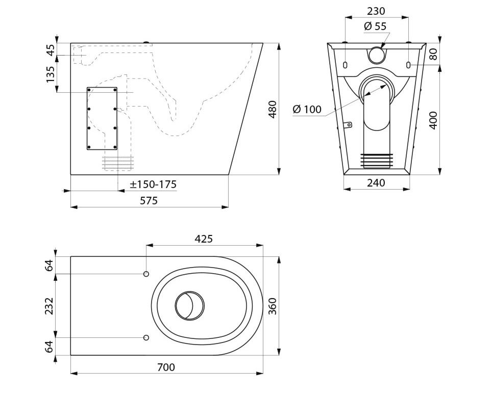 Afm. 700x360x480(h)mm excl. zitting. RVS mindervaliden closet is in geborstelde uitvoering. Met voorgeboorde gaten tbv zitting. Afvoer geschikt voor P of S sifon.Staand toilet. Verhoogd en verlengd model 700 mm voor een beter comfort voor mindervaliden. Elegant en strak design. Bacteriostatisch RVS 304. Gesatineerde afwerking. Dikte RVS: 1,5 mm. Geperste kom, zonder lasnaden, voor een eenvoudig onderhoud en een betere hygiëne. De binnenkant van de kom is gepolijst en de randen zijn afgerond voor een gemakkelijke reiniging. Met spoelrand. Water inlaat horizontaal Ø 55 mm. Horizontale of verticale afvoer Ø 100 mm. Geleverd met PVC pijp voor verticale afvoer. Waterbesparing: efficiënte werking met 4 L water of meer. Voorzien van boorgaten voor het plaatsen van een toiletzitting. RVS afdekdopjes worden meegeleverd voor gebruik zonder bril. Snel en eenvoudig te plaatsen: 2 inspectieluiken met anti-diefstal schroeven TORX. CE keurmerk. Conform de norm EN 997 voor een spoeling van 4 L. Gewicht: 15 kg.